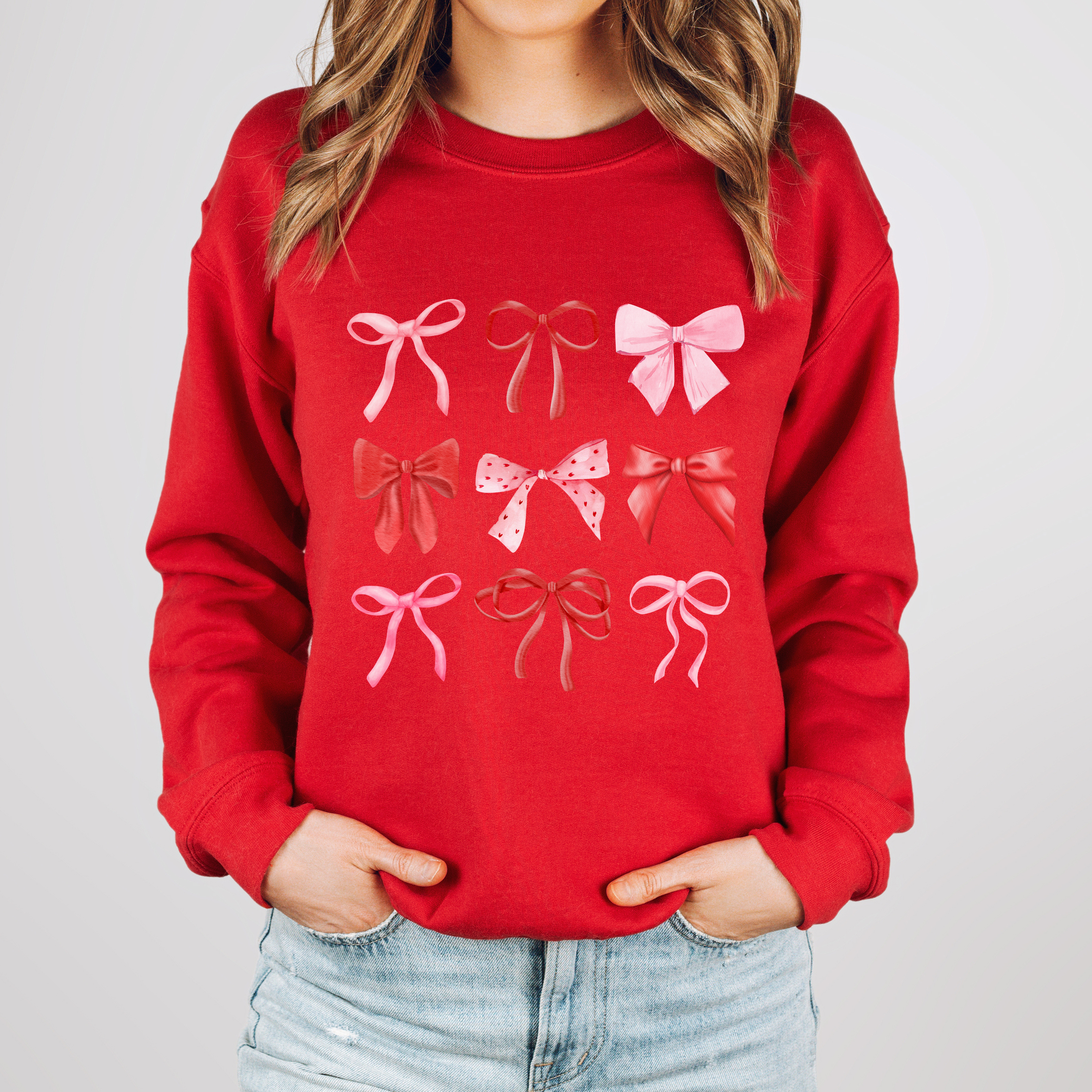Stay cozy and cute with this charming sweatshirt featuring red and pink coquette bows. Soft, stylish, and perfect for adding a romantic touch to any outfit! π